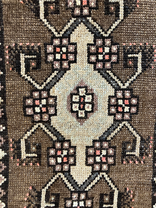Turkish Small Area Rug - Chocolate Brown / pink / cream