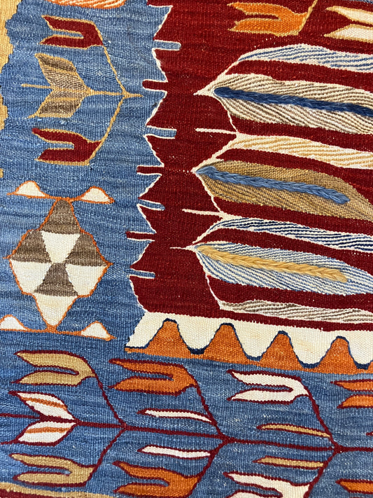 Turkish Long Runner Rug - Red / orange / blue