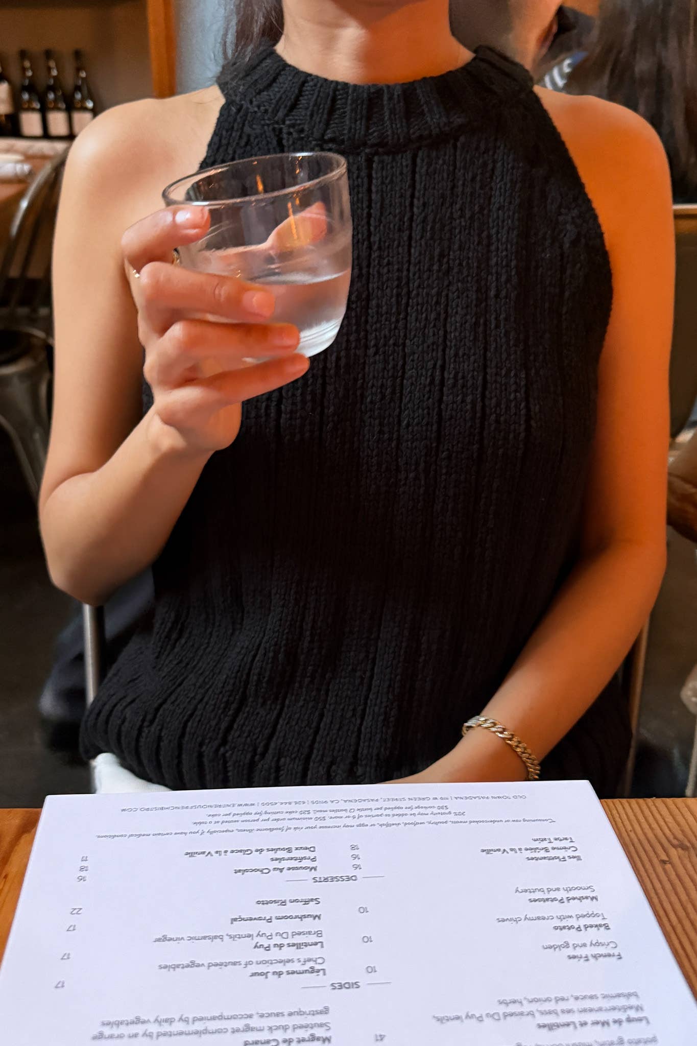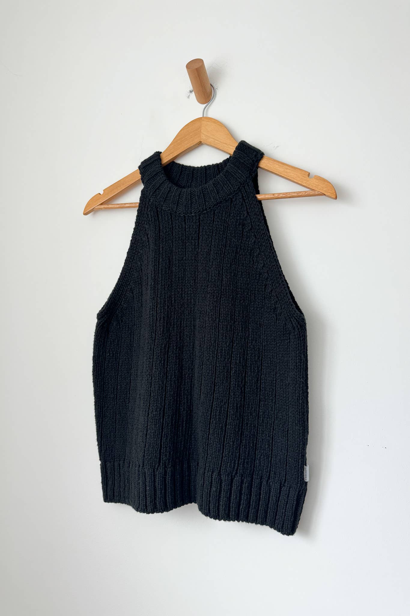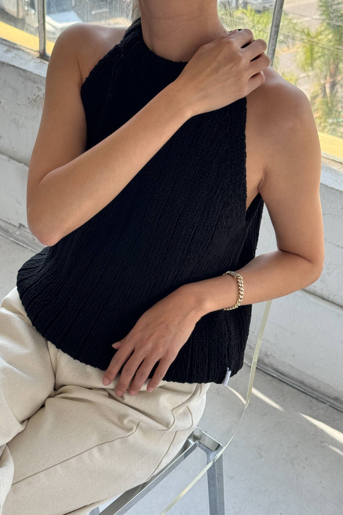Why we made this? Say hello to the Claire Tank, a refreshing take on the halter top. It follows a modern silhouette that draws inspiration from the classic halter straps we all know and love. Made of cotton, it features thick ribbed details throughout and maintains the perfect length to pair with your favorite bottoms. Contents: 100% Cotton Care Instructions: - Hand wash with like colors and in cold water or Machine wash in the mesh bag - Recommend to Lay Flat Dry for the best result, but tumble dry low heat in the mesh bag should be fine! Approximate Measurements: S - Length: 20", Chest: 17" M - Length: 20 1/2", Chest: 18" L - Length: 21", Chest: 19" Model is 5' 5", 110lbs and wearing a size XS/S