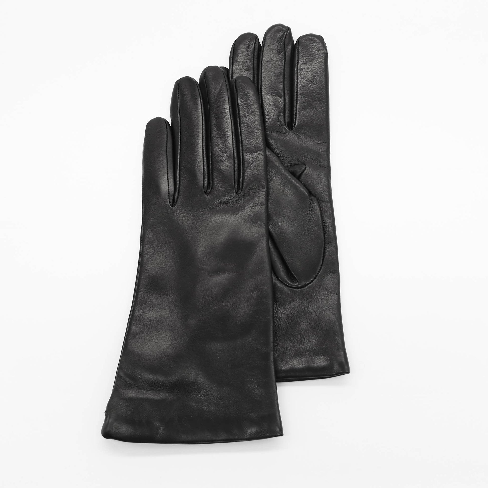 MADE IN ITALY 9" LEATHER GLOVES WITH CASHMERE LINING: BLACK / 7.5
