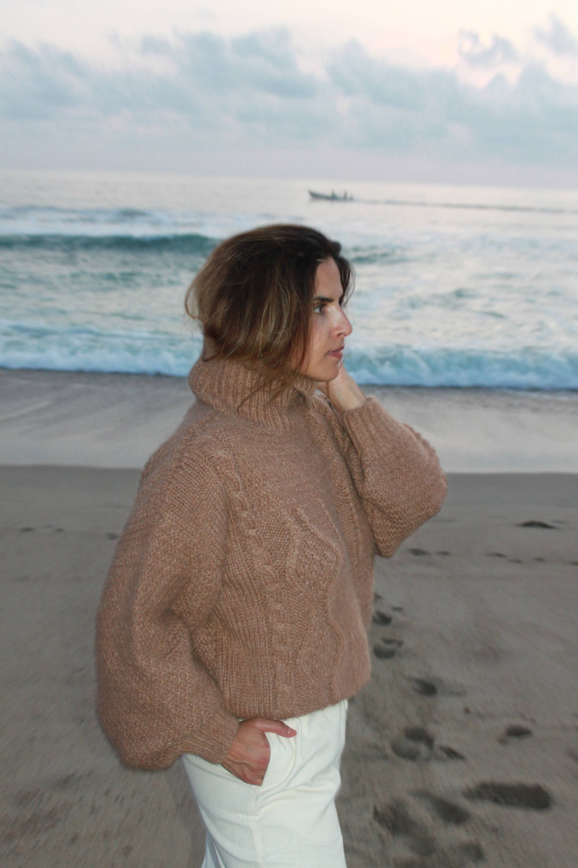 Ollie Knitted Suri Alpaca Sweater: Jute / O/S