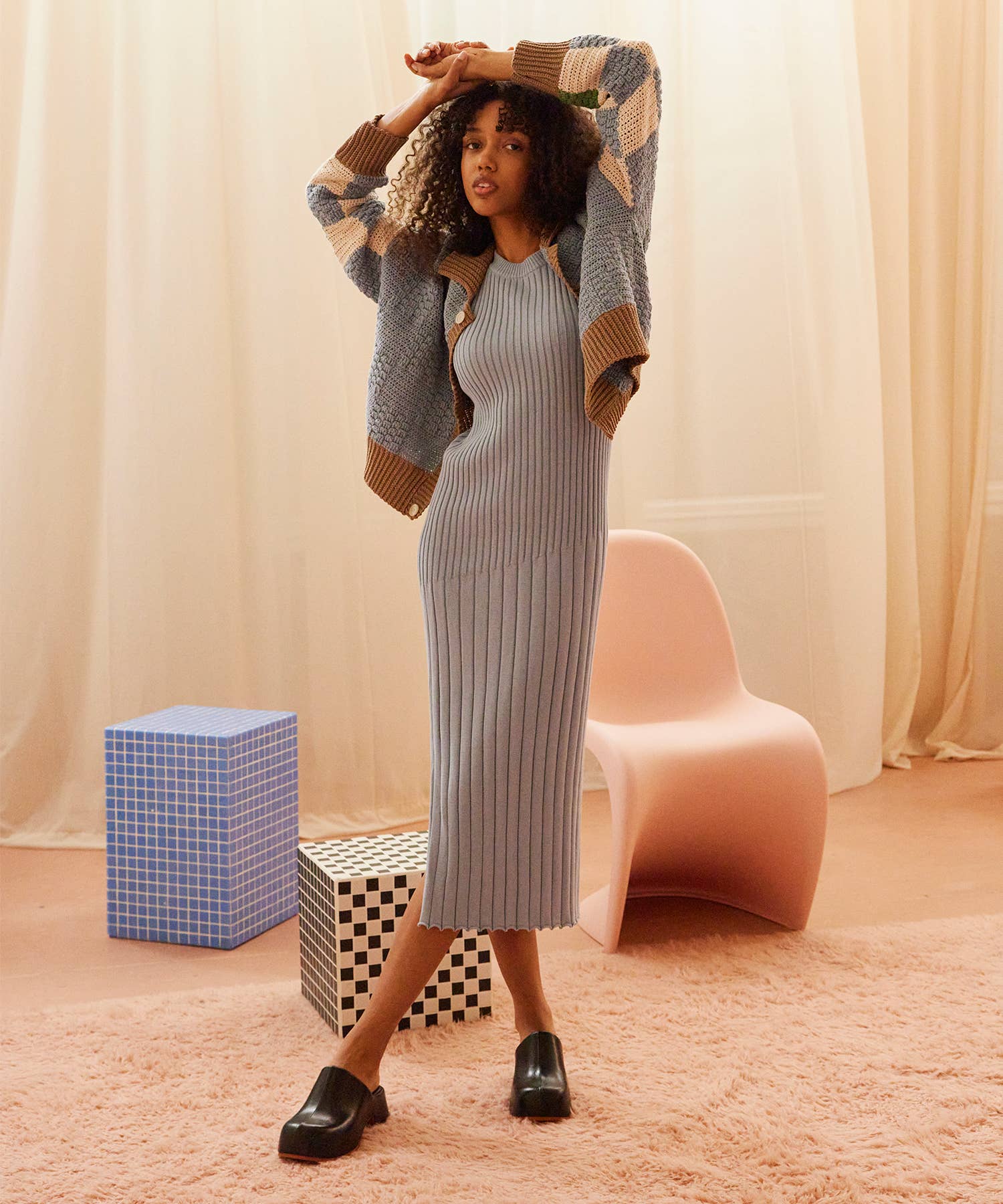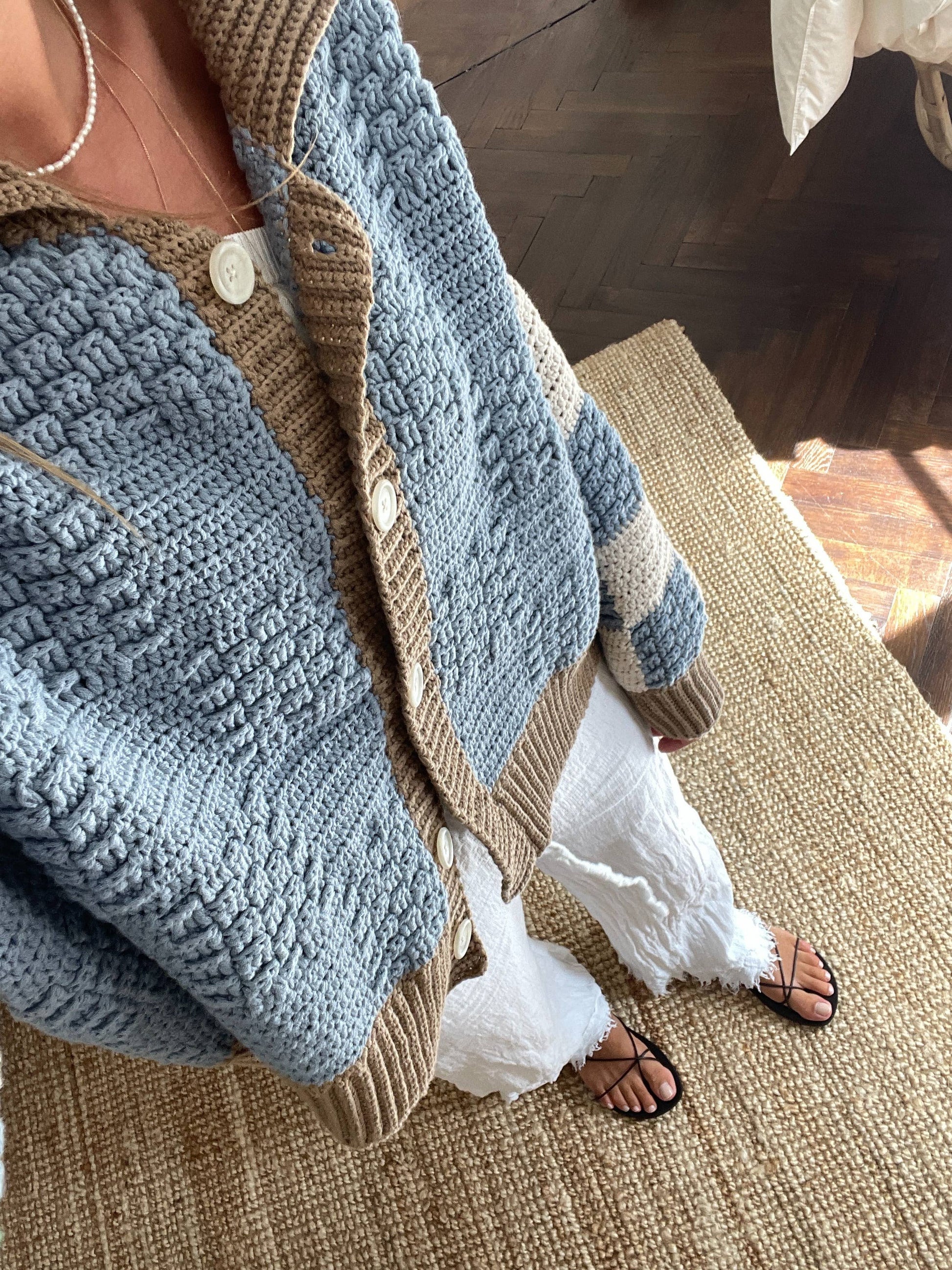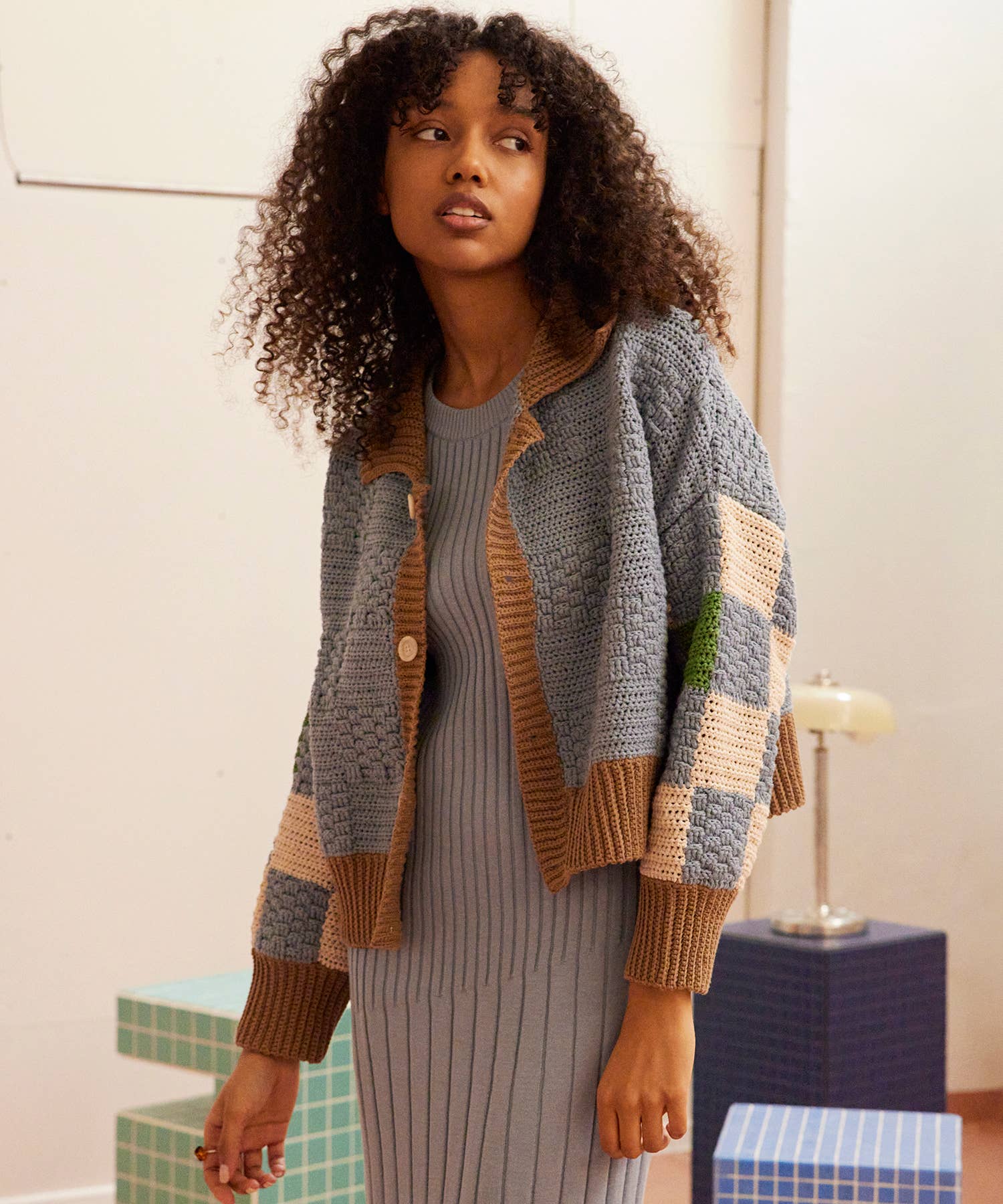 Crochet or “knitting with a hook” (as we say in Lithuania) has always been a big part of our national folklore costumes. So it's about time we launched some crochet pieces of our own. Prietema's our first crochet jacket: a Baltic take on the traditional bomber jacket that looks back towards our heritage and forwards with its slightly oversized silhouette and natural recycled paper buttons. Prietema means "dusk" in Lithuanian and she's ready to keep you cozy long after sunset.