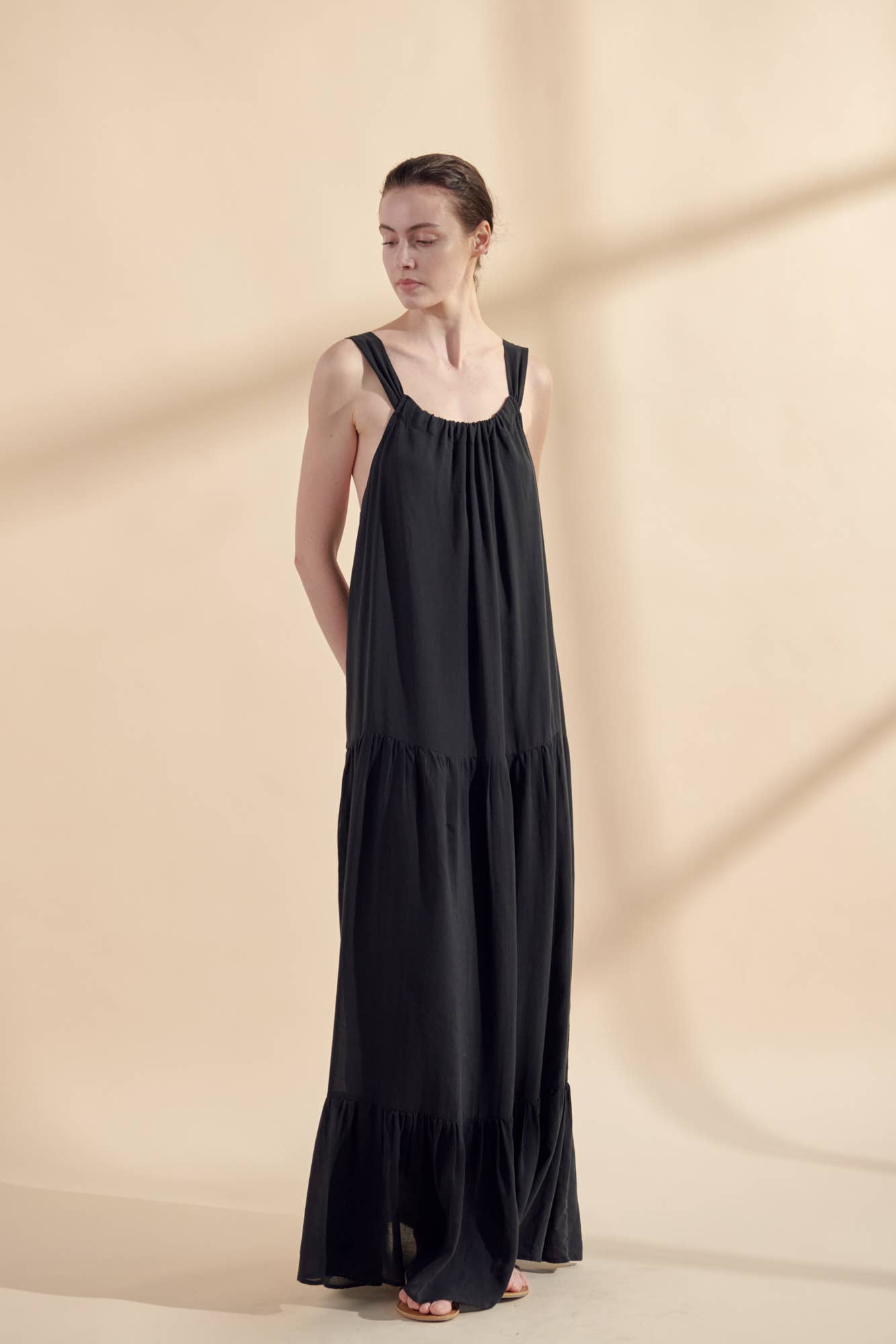 Tiered cami maxi dress: Black / 100% Tencel / Small